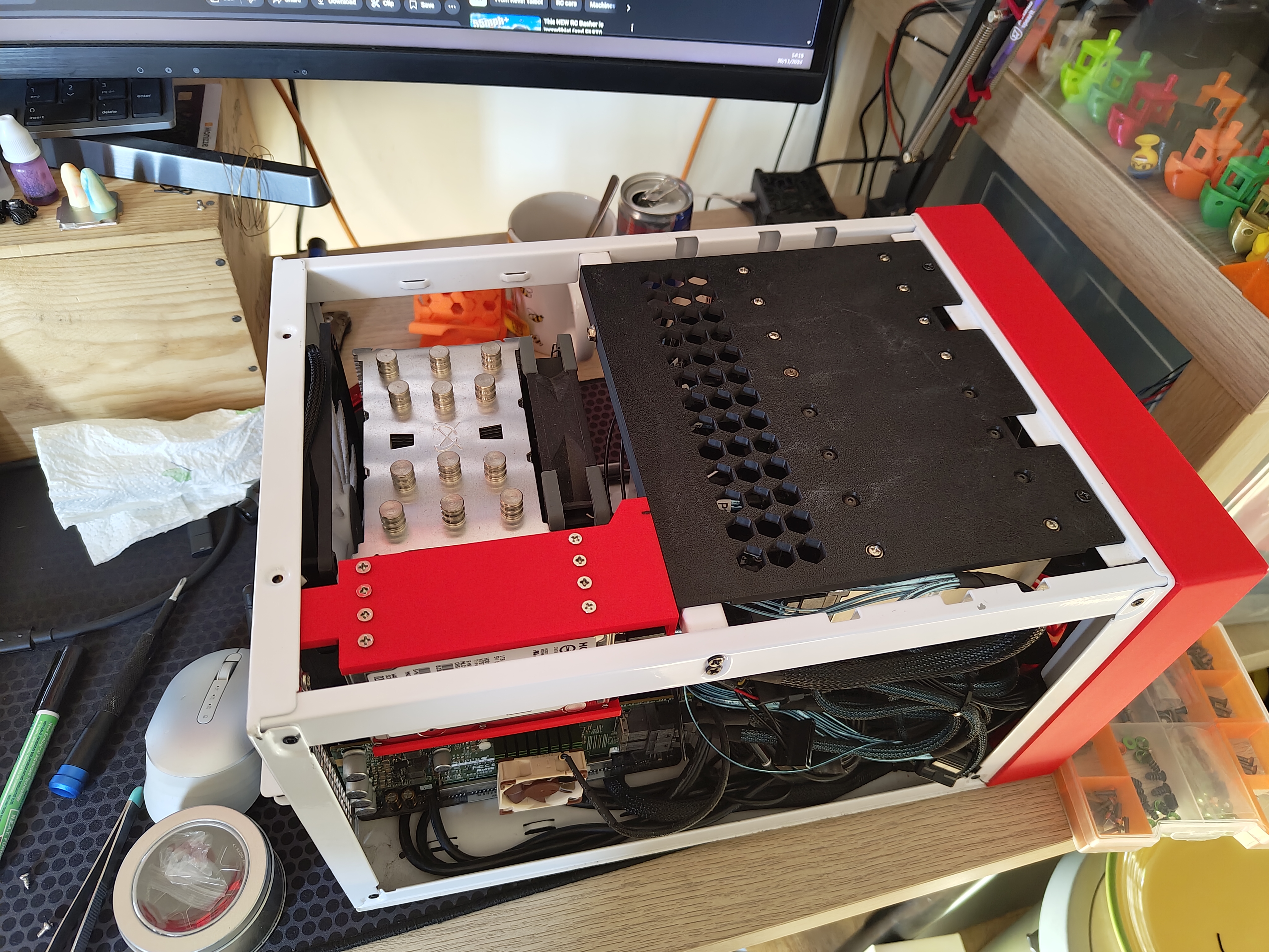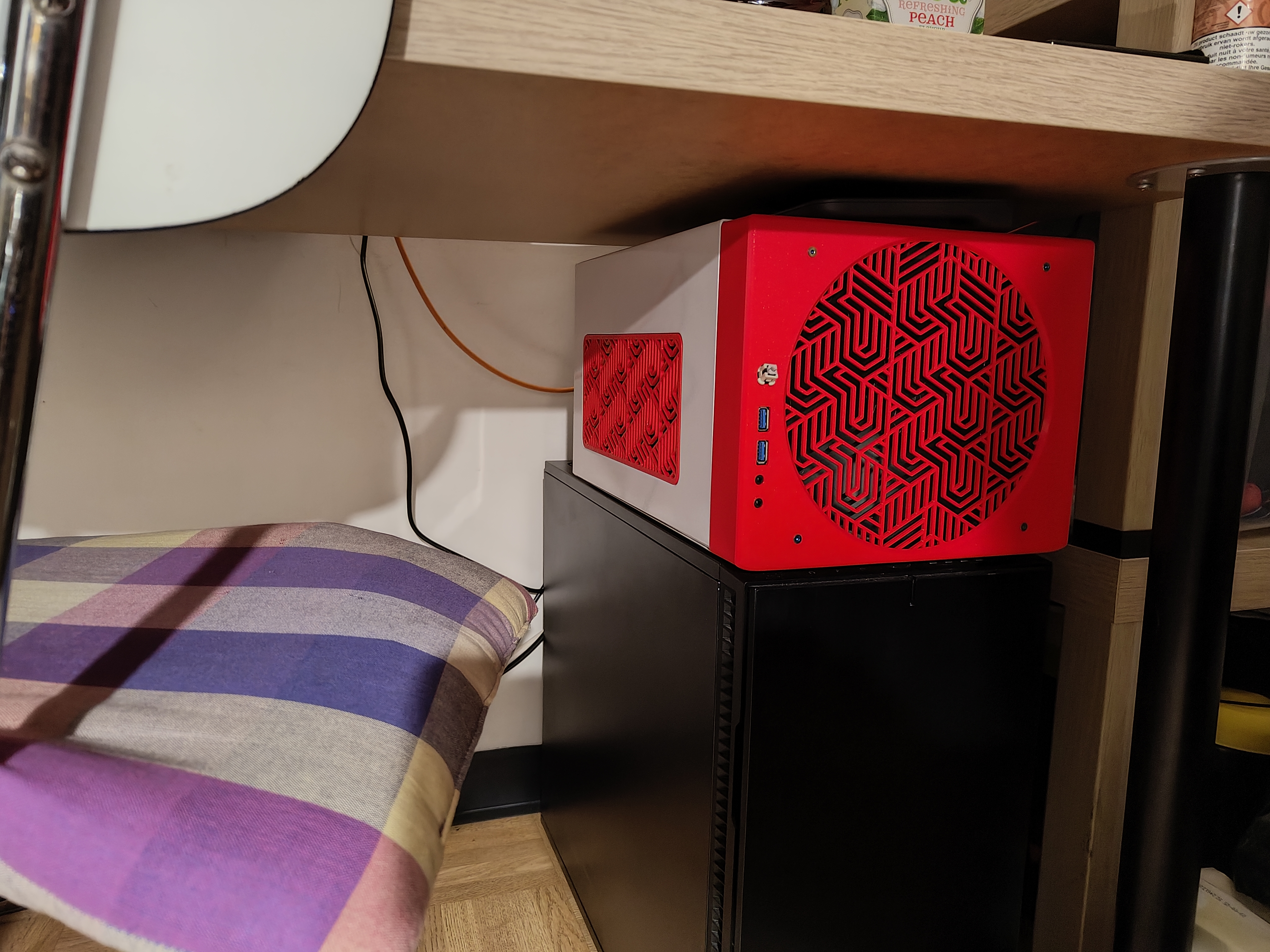 Home server running Unraid.SPecs;I7-8700ASRock Z390M-ITX/ac32GB ram+- 52TB of total disk space